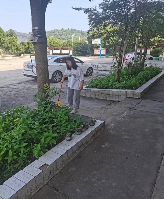 帮助工作人员打扫社区卫生,扫地拖地擦窗户