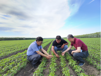 2022年6月14日至20日,黑龙江省应用技术研究与开发计划“黑龙江省主要农作物病虫草害绿色植保综合防控技术研究推广”项目再次组成由项目主持人左豫虎教授带队,东北农业大学陶波教授、孔令伟博士、硕士研究生王玺存、薛佳月、张婧组成的专家服务团,来到项目示范基地农垦红兴隆分公司八五二农场、八五三农场,检查项目试验进展情况,深入田间与农场基层工作人员、农业种植户开展绿色植保技术田间研讨,调研农作物生长和病虫草害发生与防治情况以及病虫草害农药减量防控技术的应用效果,听取农场农业生产中发生的植保问题,开展植保问题技术咨询服务(图1)。