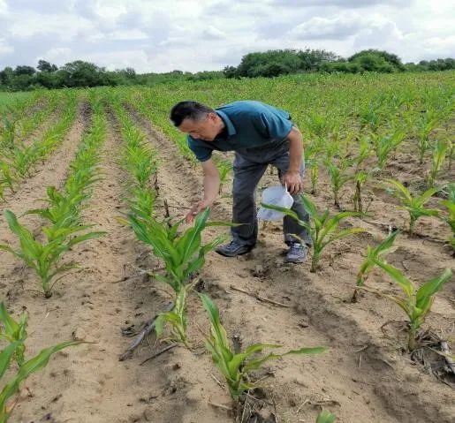 2022年春,高树仁在科研基地引进龙单31、天利758和安育401等多个优良玉米品种进行试验示范,引入玉米氮肥增效剂、新型玉米叶面肥进行玉米施肥试验示范。新型玉米叶面肥含有硝态氮以及钙、镁、硼、铁、锌等中微量营养元素,除了具有快速提苗作用之外,还可以提高叶片的叶绿素含量,促进光合作用。同时新型玉米叶面肥可以提高作物抗病抗倒伏的能力,增加作物的产量,改善作物的品质。