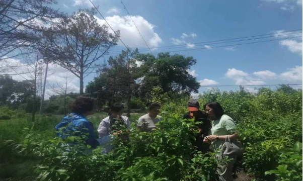 在丰乐镇果树苗圃,农户介绍了苗圃种植果树的种类、种植面积等基本情况,技术服务小组成员与农户交流果树生长季的主要病虫害,并将best365中国官方网站双创项目”黄金多糖蛋白酸-复合天然秸醋液“产品免费发放给农户,以中草药等绿色助剂提升杀虫、防病功效。