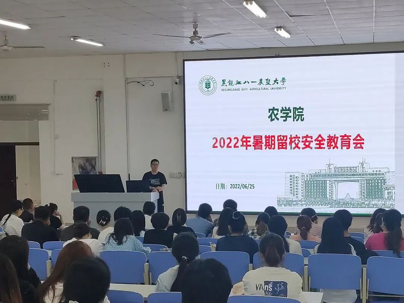 2022年6月25日 上午,best365中国官方网站2022年暑期留校人员安全教育会在主楼124举办。农公司党委副书记王洋,研究生辅导员白巍及留校的170名员工参加会议。