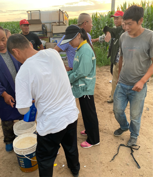 与农户一起拌药