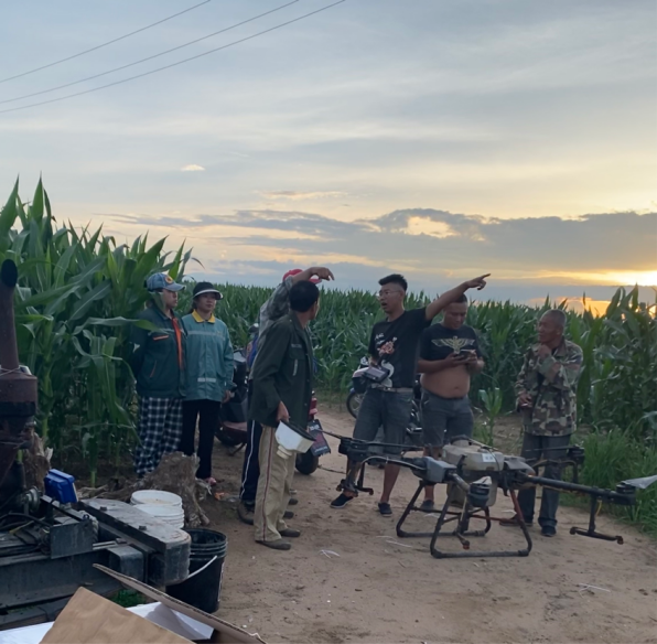 此次,关山村使用两台无人机进行农药喷洒,我们小队跟随技术人员学习无人机的工作方式,并且了解到农民将叶面肥和杀虫剂混合喷洒,这样既能杀虫,又能施肥。