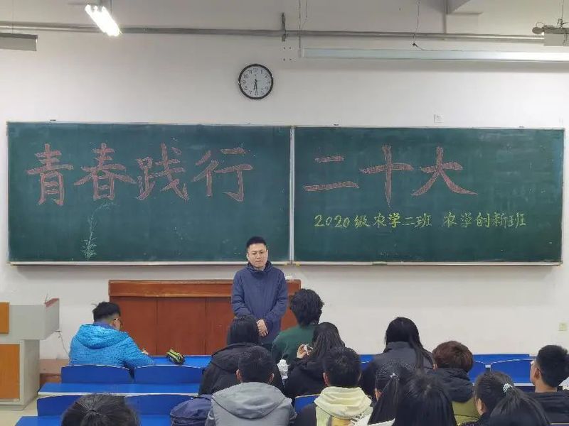 各年级在班主任的组织下,对习近平总书记在党的二十大报告中提出了一系列新观点、新论断、新思想、新战略、新要求进行学习。2021级植物保护1班全体员工进行《假如还有一个月大学毕业》命题演讲,2020级植物保护1班采用轮读的方式,组织同学们学习党的二十大报告中的重要论述,加深学习印象。2020级农学4班班会上,同学们分享自己学习党的二十大精神的感悟,退役复学的王思琪同学向同学们分享了军营生活的感想和收获,让同学们对军营生活有了更多了解。