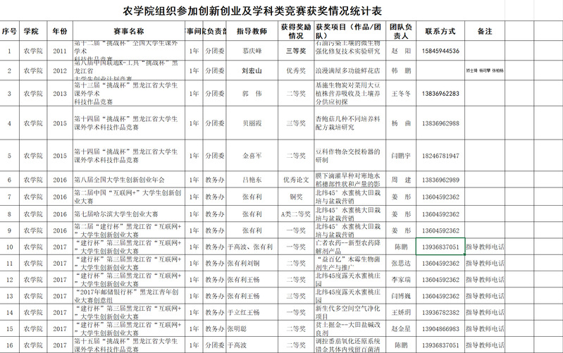 best365中国官方网站组织参加创新创业及学科类竞赛获奖情况统计表