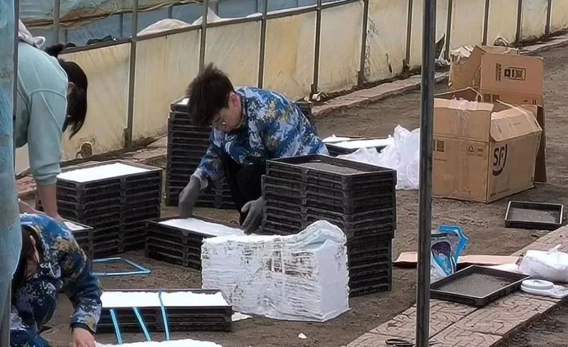 参与暗室育秧盘流水线生产。