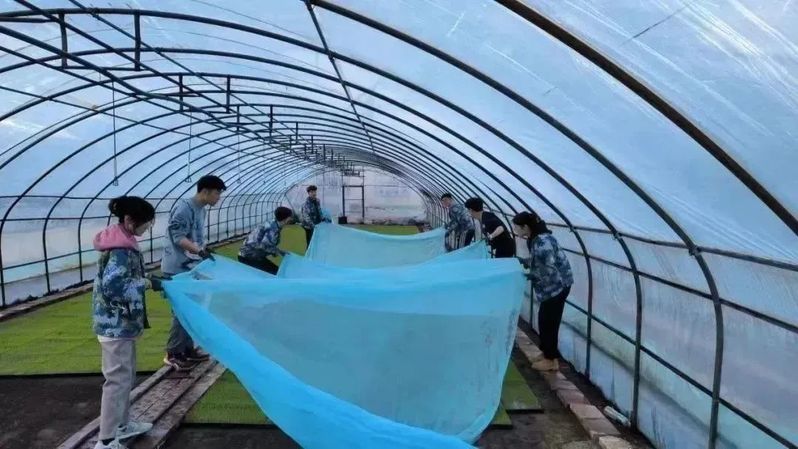 铺大棚透气膜,创造良好育苗环境。