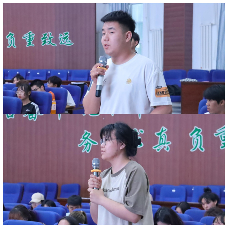 活动邀请到涂友春、任文文、任淑宁、郭彤四名优秀毕业生代表与同学们交流,以亲身经历为大家答疑解惑。交流过程中,毕业生代表们分别从不同角度和侧重点分享了自己的学习经验、工作体会和大学感悟,并对如何平衡学习与员工骨干工作的关系、如何备考考研等问题进行归纳解答,提出一套行之有效的方式方法。学姐们热情的解答让在座的同学们更加明确了未来的方向。毕业生代表们还鼓励学弟学妹们要积极规划、敢想敢拼,不负青春韶华。