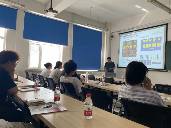 本次展出的实验仪器有小型流式细胞仪、正倒置一体荧光显微镜、荧光定量PCR仪。师生们通过指导可亲自动手操作仪器,感受仪器的使用效果。现场师生们认真观看仪器操作并不断提出问题,工程师们给出专业的解答。