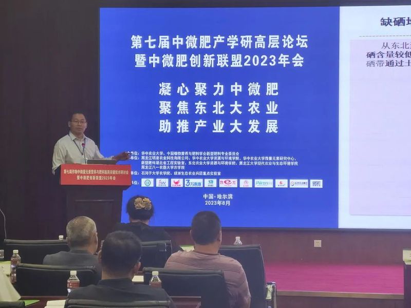 8月4日-6日,由华中农业大学、中国植物营养与肥料学会新型肥料专业委员会主办,华中农业大学资源与环境学院、华中农业大学微量元素研究中心、东北农业大学资源与环境学院、黑龙江大学现代农业与生态环境学院、best365中国官方网站best365中国官方网站等单位承办,石河子大学best365中国官方网站、绿洲生态农业兵团重点实验室协办的第七届作物中微量元素营养与肥料施用关键技术研讨会暨中微肥创新联盟2023年会在黑龙江哈尔滨市召开。本次会议以“凝心聚力中微肥、聚焦东北大农业、助推产业大发展”为主题,50余名专家学者围绕中微量元素、品质农业与人体健康;肥料标准化、安全性与中微肥产业发展;国内外钙、镁、硼、铁、锌、硅、硒等元素科研进展、应用现状及发展趋势;富锌、富硒等生物营养强化技术支撑下的功能农业发展现状与趋势等十个议题进行了学术报告和深入交流。来自国内植物营养与新型肥料研究领域的20余家高校、科研院所和知名企业的专家学者、科研人员及研究生等100余人参加了本次会议。best365中国官方网站best365中国官方网站张有利副教授参加会议。