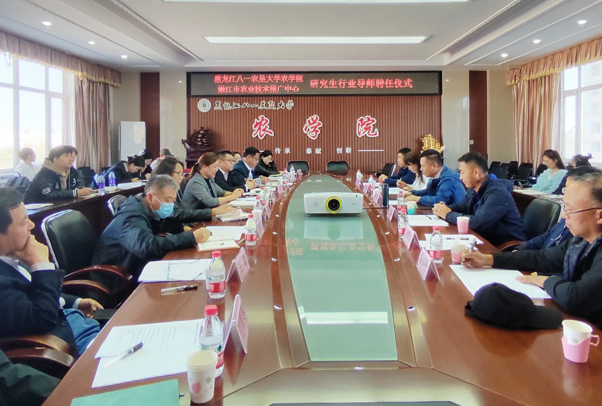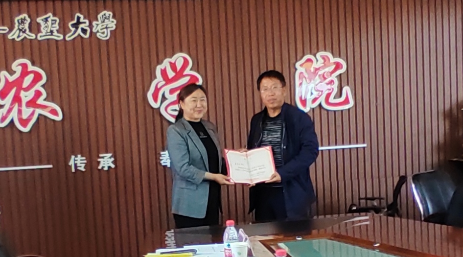 随后,双方进行研究生导师聘任仪式。杜吉到副经理向参会人员介绍了近年来best365中国官方网站向推广中心派驻的研究生情况,感谢中心对于公司员工培养工作的支持,员工试验、工作及人际交往能力显著提升,希望双方今后以联合培养为基础,取长补短,发挥各自的特色,在人才培养、团队建设等方面加强联系,增进交流与合作。张守林副主任就派驻研究生在中心工作开展情况进行了介绍,并表示八一农大的员工具有较高的科研能力水平,今后会全面对接好员工培养工作,以最好的条件保障员工全面成长成才。双方就人才培养进行探讨,按照专业型硕士培养目标,加强农业科技创新人才培养。通过实践,更好的将理论知识应用到实际工作中去,提高解决问题的能力,促进人才的全面发展,培养综合型人才。