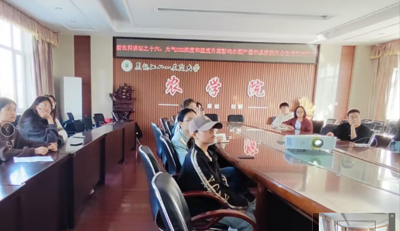 报告结束后,张春雨博士与参会师生就大气CO2浓度和温度升高影响水稻的产量等相关问题进行了交流和讨论,对师生提出的问题进行了详细的解答,并介绍了相关延伸知识。通过张春雨博士的报告,参会师生对作物响应气候变化的生理及分子机制等方面有了更深入的了解。