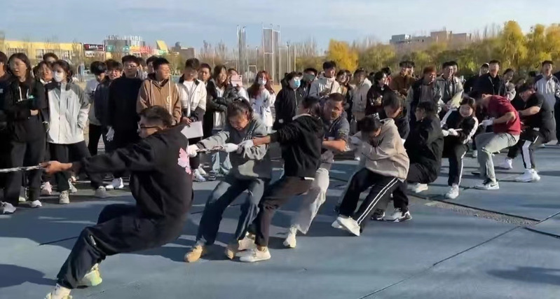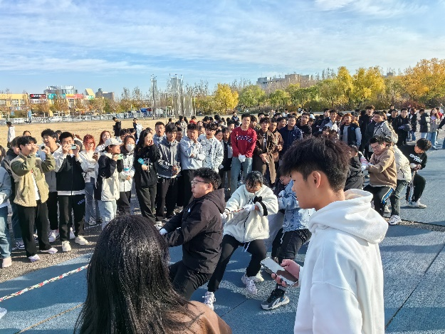 助威队员们纷纷发挥出自己的力量,用尽全身力气往后拉,试图将对方队伍拖入自己的一方。整个比赛过程中,队员们紧密配合,默契十足。他们用力的同时,也不忘互相鼓励,为队友们加油打气。观众们看得热血沸腾,为队伍们的拼搏精神喝彩。比赛进行到中途,气氛更加紧张。队员们的脸上都写满了坚定和决心,他们不断调整站位,寻找最佳的拉力点。有的队伍采取了分工合作的策略,将队员分为前后两排,前排负责用力拉,后排负责稳住位置。这种团队合作的方式,使得队伍的整体力量得到了最大化的发挥。经过激烈的比赛角逐,最后植物保护一班、种工二班、农学二班、农学一班、资环二班、农学四班获得了晋级资格。