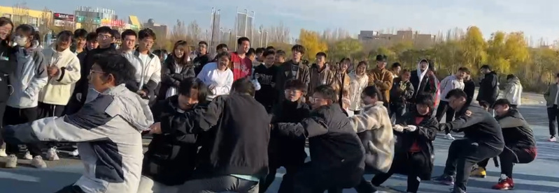 助威队员们纷纷发挥出自己的力量,用尽全身力气往后拉,试图将对方队伍拖入自己的一方。整个比赛过程中,队员们紧密配合,默契十足。他们用力的同时,也不忘互相鼓励,为队友们加油打气。观众们看得热血沸腾,为队伍们的拼搏精神喝彩。比赛进行到中途,气氛更加紧张。队员们的脸上都写满了坚定和决心,他们不断调整站位,寻找最佳的拉力点。有的队伍采取了分工合作的策略,将队员分为前后两排,前排负责用力拉,后排负责稳住位置。这种团队合作的方式,使得队伍的整体力量得到了最大化的发挥。经过激烈的比赛角逐,最后植物保护一班、种工二班、农学二班、农学一班、资环二班、农学四班获得了晋级资格。