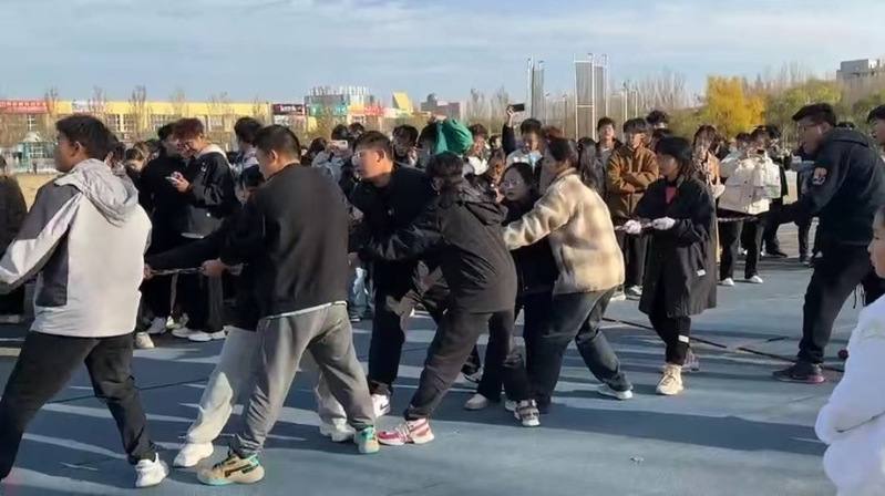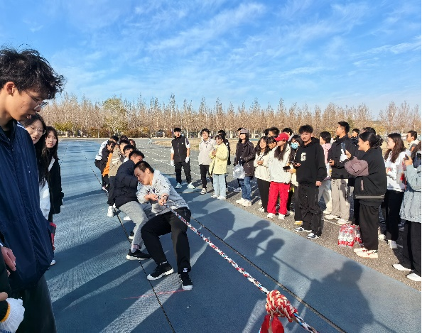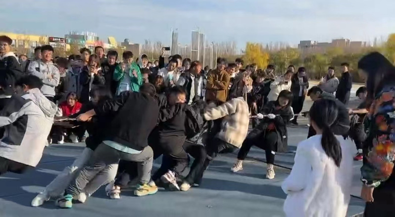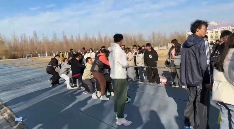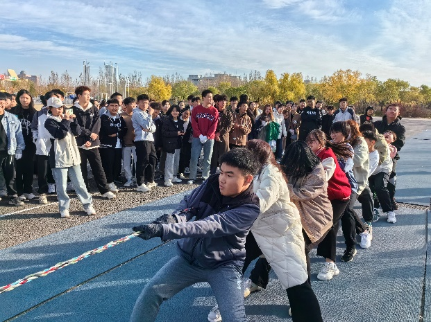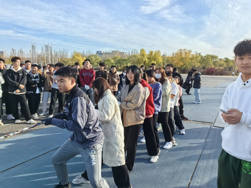 助威队员们纷纷发挥出自己的力量,用尽全身力气往后拉,试图将对方队伍拖入自己的一方。整个比赛过程中,队员们紧密配合,默契十足。他们用力的同时,也不忘互相鼓励,为队友们加油打气。观众们看得热血沸腾,为队伍们的拼搏精神喝彩。比赛进行到中途,气氛更加紧张。队员们的脸上都写满了坚定和决心,他们不断调整站位,寻找最佳的拉力点。有的队伍采取了分工合作的策略,将队员分为前后两排,前排负责用力拉,后排负责稳住位置。这种团队合作的方式,使得队伍的整体力量得到了最大化的发挥。经过激烈的比赛角逐,最后植物保护一班、种工二班、农学二班、农学一班、资环二班、农学四班获得了晋级资格。