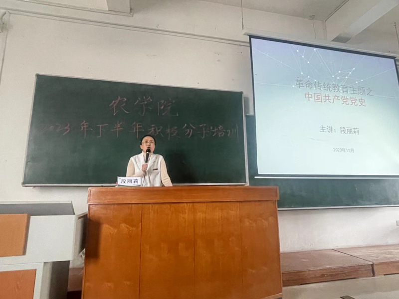 11月4日下午,闻世宇老师与公司党委副书记王洋老师分别讲授专题课程《歌声里的校史与北大荒精神》和《坚定理想信念 做合格共产党员》。闻世宇老师通过四首歌曲为同学们讲述了老董事长王震将军与八一农大的故事,带领同学们领略北大荒的壮美。通过视听结合方式,闻老师向同学们讲述了中国共产党精神谱系之——北大荒精神以及学校建校65年迁校20周年的辉煌历史。第二节课王洋老师为同学们讲述了有关于理想信念的问题,他勉励同学们要把握信仰的内涵,坚定理想信念,找准自身不足与差距,践行青年人的使命担当。同时表达了对同学们做有理想、敢担当、能吃苦、肯奋斗的新时代好青年的殷切期待。