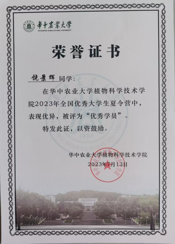 夏令营情况:暑期参加中国农业大学,华中农业大学,华南农业大学,中国农业科学院的夏令营活动,最终去向是华中农业大学