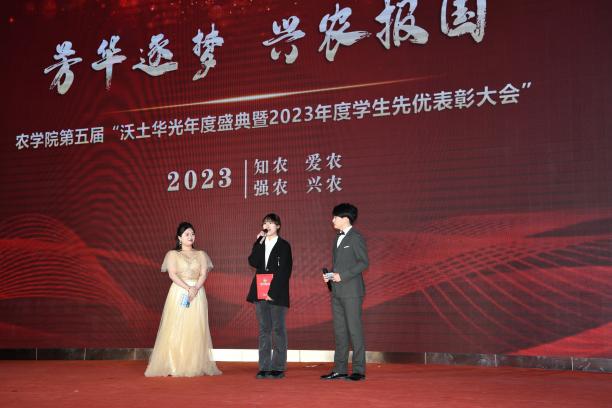 会议颁发了红星榜样奖、学海杨帆奖、玲珑百馨奖、农学力量奖、文明礼寓奖、青青足音奖六项奖项,分别表彰在党建、学风、寝风、第二课堂活动、员工骨干培养、社会实践及志愿服务等方面表现突出的员工及员工群体。大会由舞蹈《梦》演绎出的美好丰收场景中拉开帷幕,在2023年best365中国官方网站员工工作回顾视频《讲农学好故事,做兴农逐梦人》中开场。颁奖过程中穿插优秀代表事迹分享、采访等环节,激励广大同学向优秀看齐。