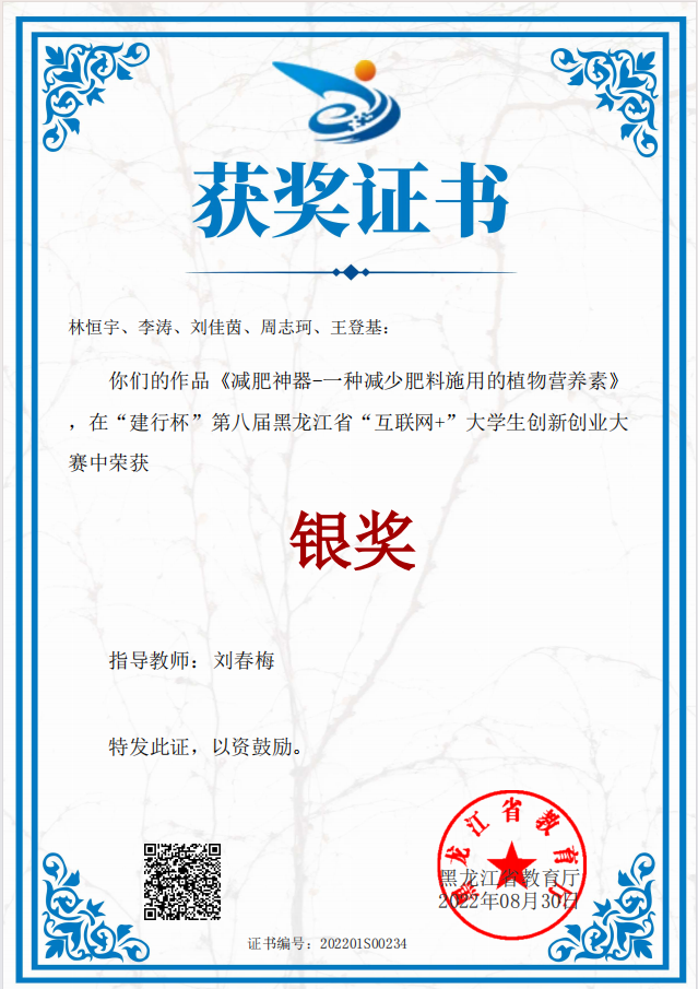 第八届中国国际“互联网+”老员工创新创业大赛黑龙江赛区银奖