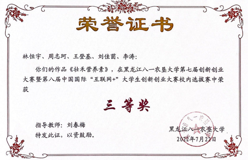 第八届中国国际“互联网+”老员工创新创业大赛黑龙江赛区银奖