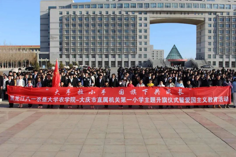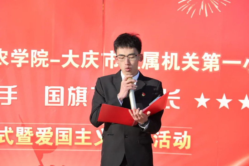 为进一步加强爱国主义教育,引导员工厚植家国情怀,按照校团委《关于组织开展爱国主义教育-“国旗下共成长”主题升旗仪式的通知》要求,结合学院特色育人系列活动,4月1日,在学校八一广场,best365中国官方网站邀请大庆市直属机关第一小学校20余名师生代表来校,共同开展“大手拉小手 国旗下共成长”主题升旗仪式暨爱国主义教育活动。机关一小书记宋德印、政教处主任孙文超、党办主任马力波,农公司党委副书记王洋、分团委书记丁雪冬、全体辅导员、员工骨干及本科员工近1200人参加了活动,仪式由学院兼职团委副书记李怿聪主持。