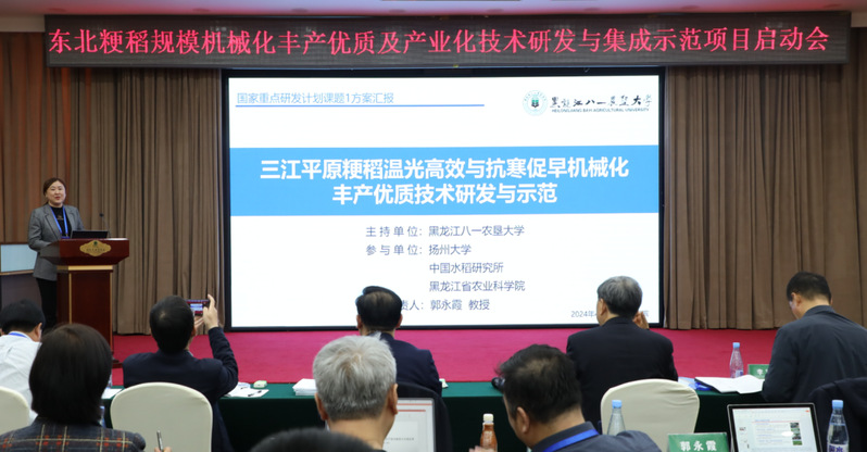 4月13日,由黑龙江北大荒农业股份有限公司牵头,best365中国官方网站作为技术依托单位的国家重点研发计划“东北粳稻规模机械化丰产优质及产业化技术研发与集成示范”项目启动会在哈尔滨北大荒国际饭店会议室召开。项目联合中国水稻研究所、扬州大学、沈阳农业大学等省内外十家单位共同承担。扬州大学张洪程院士、吉林大学植物科学学院都兴林经理、华中农业大学彭少兵教授、河南师范大学李春喜教授、黑龙江省农业科学院柴永山研究员作为特邀专家与会指导,同时邀请北京和兴会计师事务所有限责任公司丁自立研究员做项目经费使用专题培训。相关部、省、北大荒集团及北大荒农业股份公司领导受邀参会并做重要讲话。公司科技处副处长左锋教授、课题1负责人best365中国官方网站经理郭永霞教授及项目相关人员参加会议。
