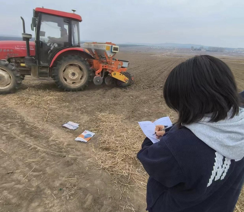 最令我印象深刻的就是玉米的大田播种。我看见包裹着种衣剂的玉米有序的排列在田地里,我看见按照一定比例的复合肥均匀的落在田地中,我亲眼目睹了一片片田地在短短几小时内完成播种,我感到了前所未有的震撼。通过这次实习,我理解到,优质的播种机械可以根据土质、湿度以及种子的种类等因素,调整播种的深度和密度,从而最大程度地促进作物生长,提高最终产量。当我站在广阔无垠的大田边,看着机械作业后整齐划一的种植行,内心涌出了对未来农业的无限憧憬。