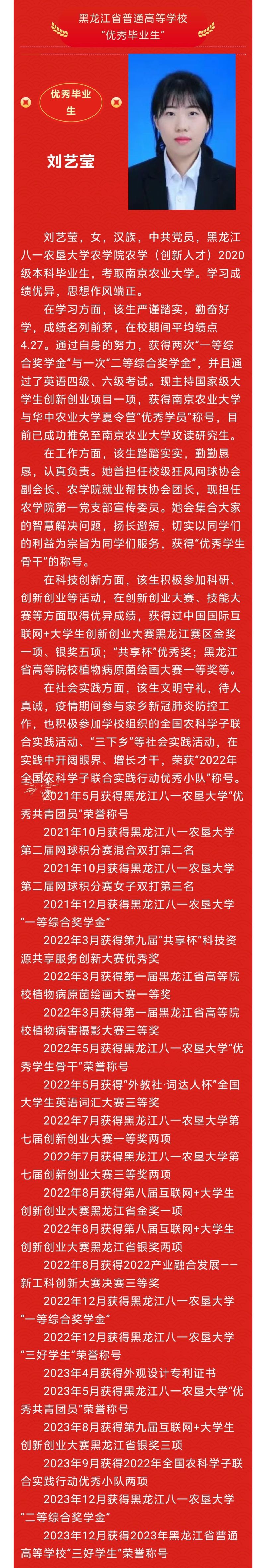耕读榜样丨黑龙江省普通高等学校“优秀毕业生”刘艺莹