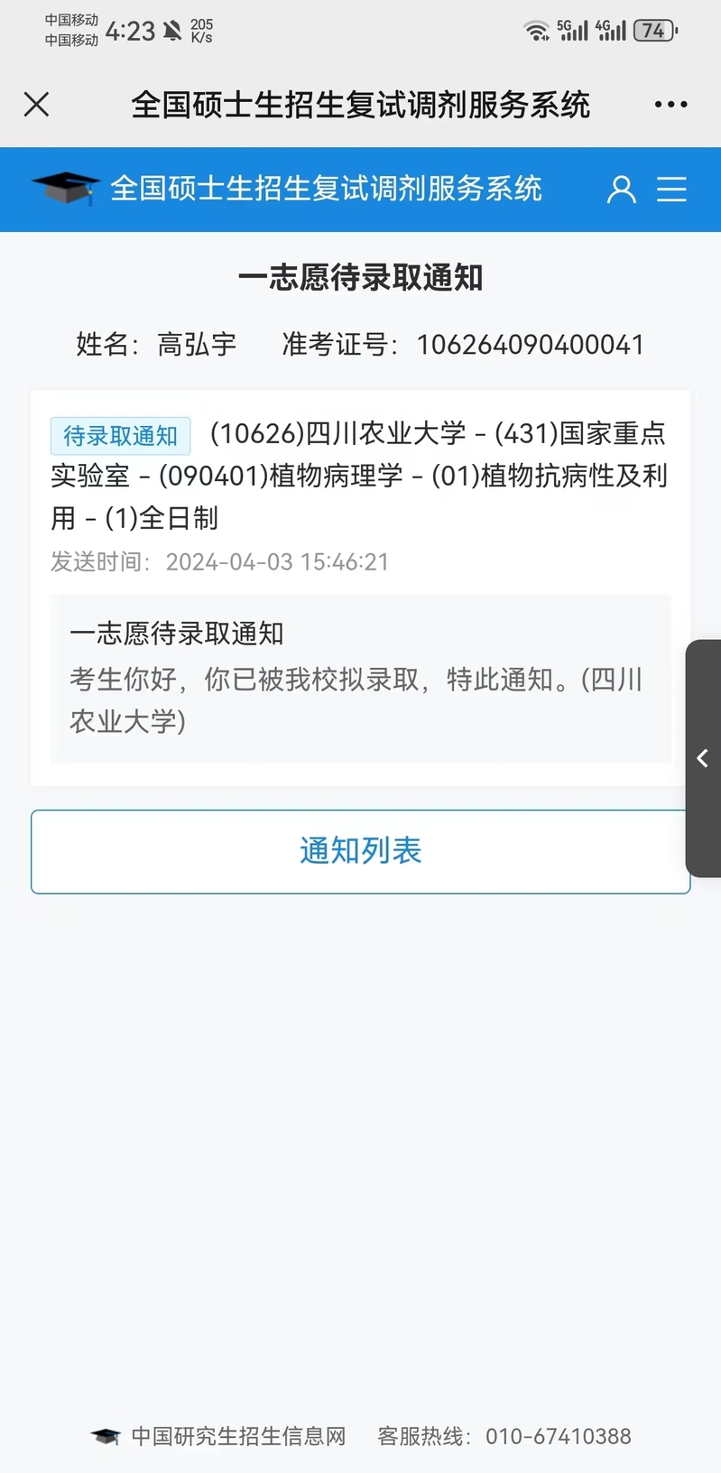 4号床,高弘宇,2020级植物保护专业员工,考取四川农业大学,砥砺前行,不负时光。