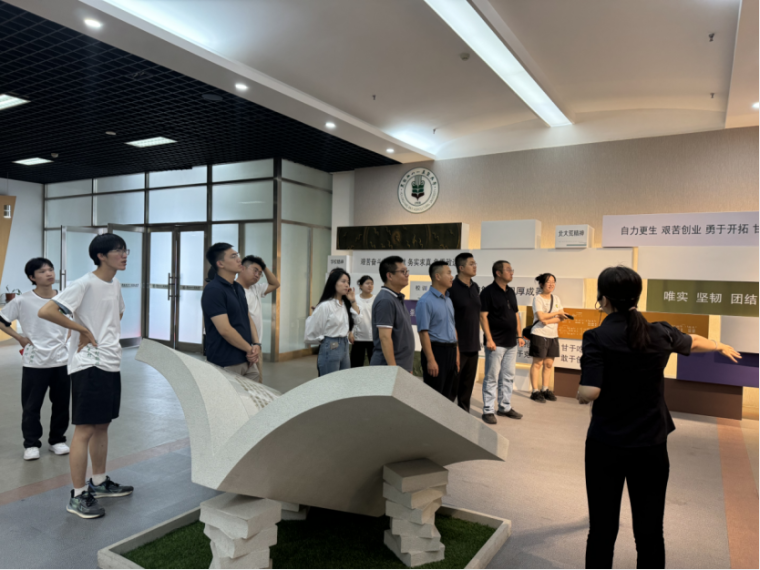 结束基地的参观交流后,两院师生们来到了联合实践的第二站,铁人王进喜纪念馆。在庄严肃穆的铁人王进喜纪念馆内,历史的厚重与英雄的伟岸交相辉映,深深触动了每一位师生的心弦。讲解员用饱含深情的语调,缓缓讲述着“铁人”王进喜的生平事迹,从他带领钻井队战天斗地、突破重重困难,到“有条件要上,没有条件创造条件也要上”的豪迈誓言,每一个故事都让人热血沸腾,深受鼓舞。师生们纷纷表示,此次参观不仅加深了对“铁人”精神的理解和认识,更激发了他们投身农业、报效祖国的热情。