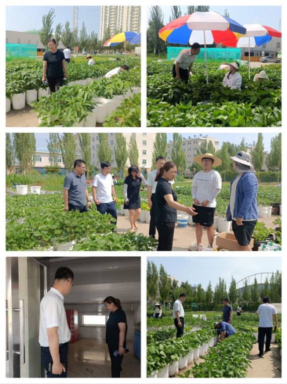 本次党委理论学习中心组还安排了实践考察环节。学院领导班子成员来到校内盆栽场,查看秧苗长势、场地规划、科研进展、员工实验情况,现场解决问题,收集反馈问题,并鼓励员工躬身实践,多出成果,发挥党员员工先锋模范作用,并叮嘱大家注意安全。