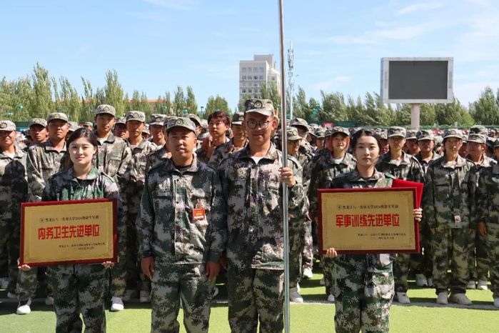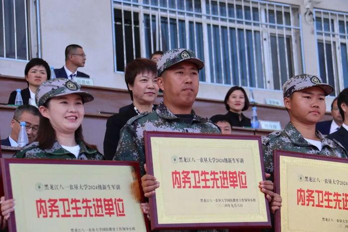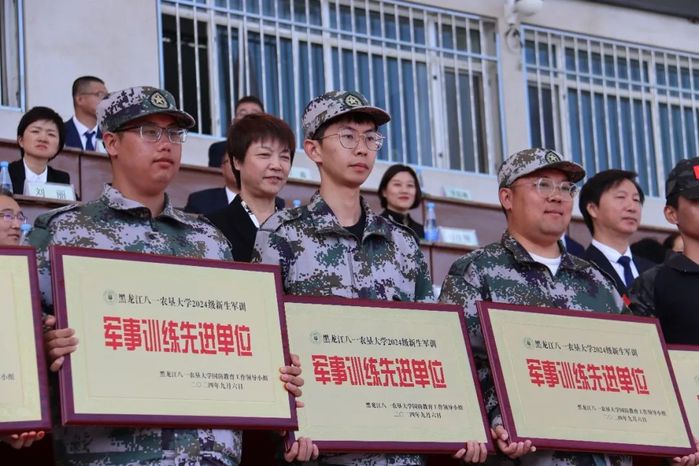 最后best365中国官方网站荣获黑龙江八一农具大学2024级新生军训“军事训练先进单位 ”和“内务卫生先进单位”,公司黄伟东老师荣获“2024级新生军训优秀教导员”。方靖涵等12名同学荣获 “军事训练先进个人”。