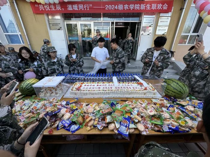 同时,为了让新生们感受到学院的关怀关爱,帮助2024级新同学更好的适应老员工活,提升新生的幸福感与归属感,学院下午为9月份过生日的新生举办了一场集体生日会,让新生们在军训的疲惫中感受到了家的温暖和学院的关怀。