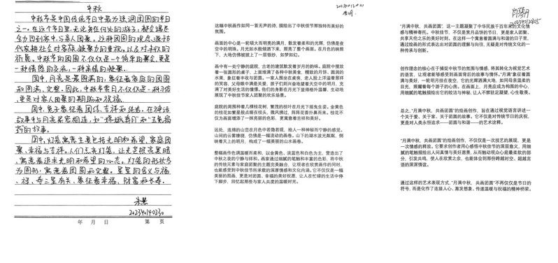 中秋之际,同学们通过书画表达了心中的乡愁。在这幅长卷上,乡愁不再是抽象的情感,而是通过具体的笔触,成为了一幅充满温情的图景。