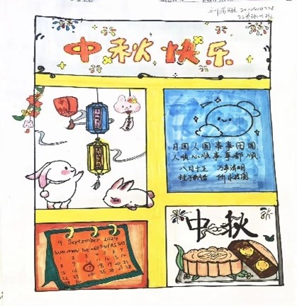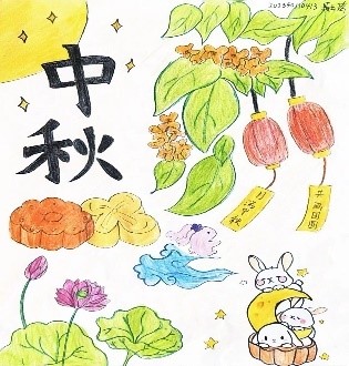 同学们纷纷拿起画笔,用绚丽的色彩和灵动的线条,描绘出心中的中秋美景。有的同学画了一轮金黄的满月,月宫中的玉兔活泼可爱;有的同学则展现了一家人围坐在一起赏月、吃月饼的温馨场景;还有的同学以中秋传统习俗为灵感,创作了精美的画卷。