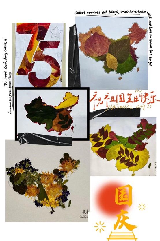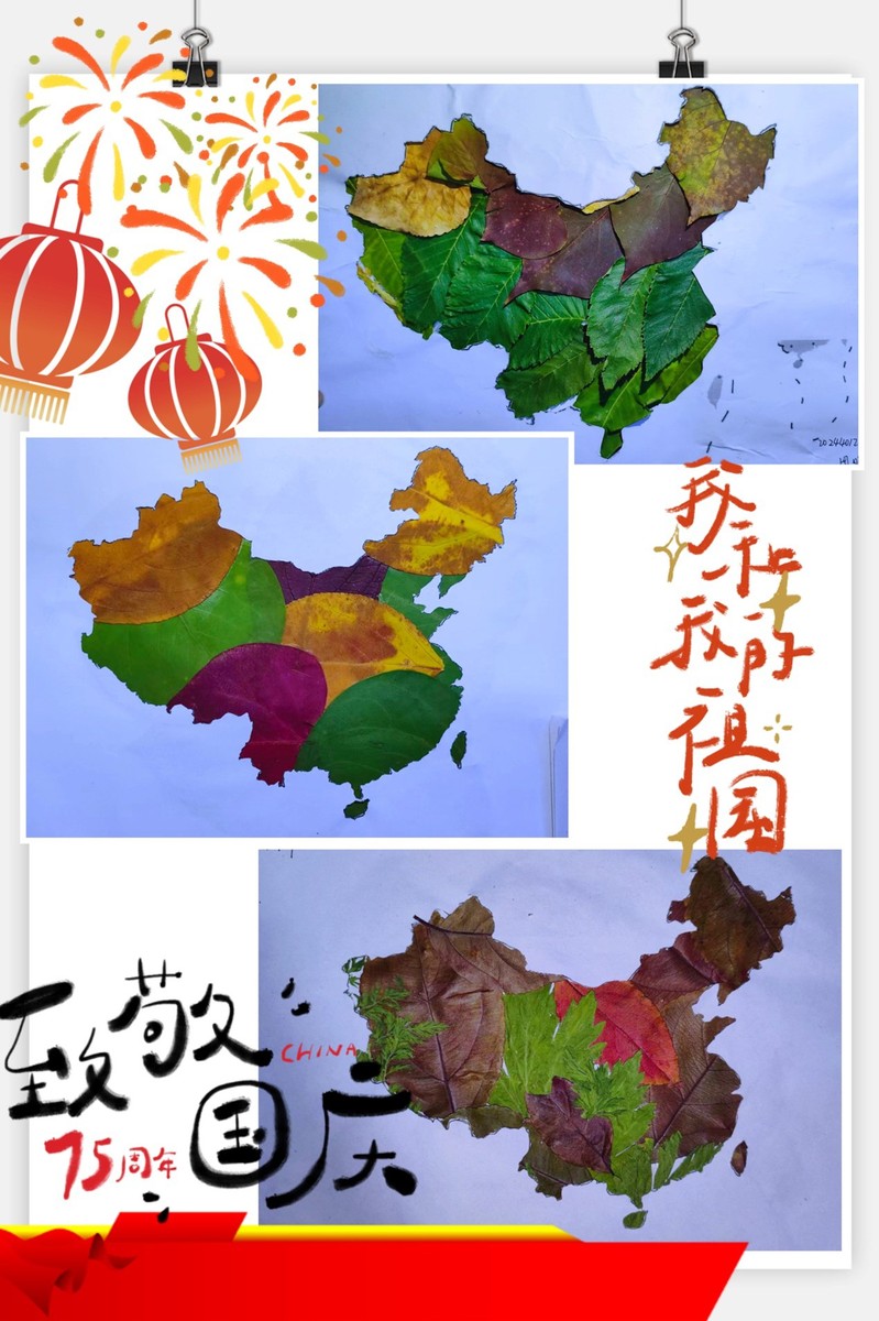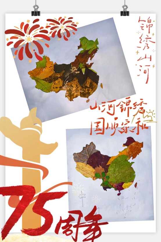 同学们以大自然的力量,用秋天的色彩制作对祖国最终真的祝福。