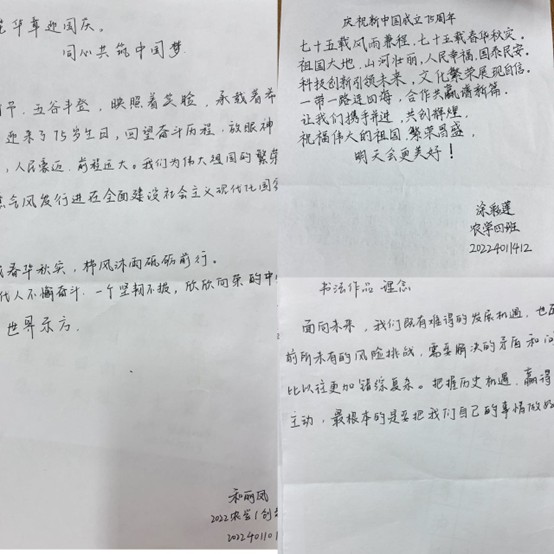 经历本次活动,同学们用这种特殊的祝福表达了对祖国的热爱,以及对地理文化的了解与认识。