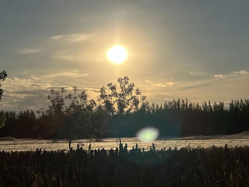 东北微冷的十月,走在田间,看见天空的太阳,传来一阵暖意。