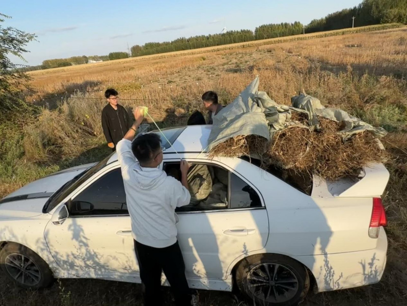 8月份开车带师弟们下地取样,小小的车子承载了他不该承载的重量,空间合理运用,塞得满满当当!