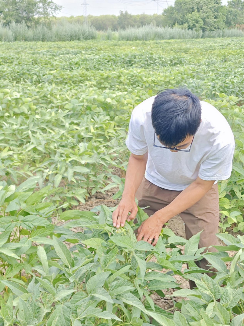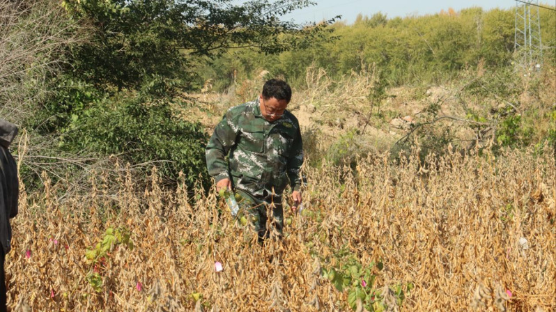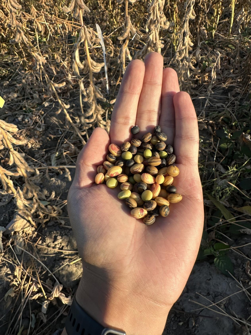 在田间进行大豆熟期调查,摘一个豆荚尝一粒豆,多余的就放在口袋,走了一圈下来发现口袋里的豆子竟然是五彩斑斓的。