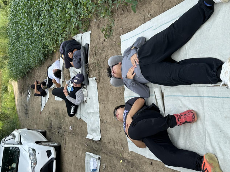 8月24日,开学日,虽然自己也是个“新生”,但是硕博的无缝连接,还是带着师弟们下地取样啦,中午地头吃完饭,大家简易的铺个“床”,席地而睡,休息一下!