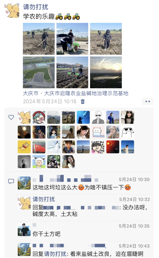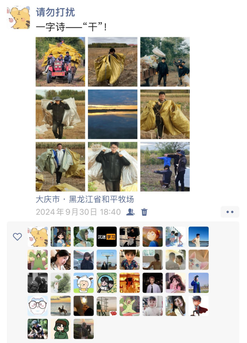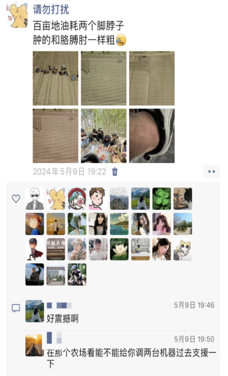 看着落日余晖的远去,也许能留住它的就是“咔嚓”的一瞬间,落日远去,农人依旧忙。 脚下有泥,心中有光,肩上有担当。看完国庆节当天的plog故事,我们把视线回到实践的初期,从五月的春播里,感受一路走来深耕黑土到迎接收获9月秋收的实践故事。