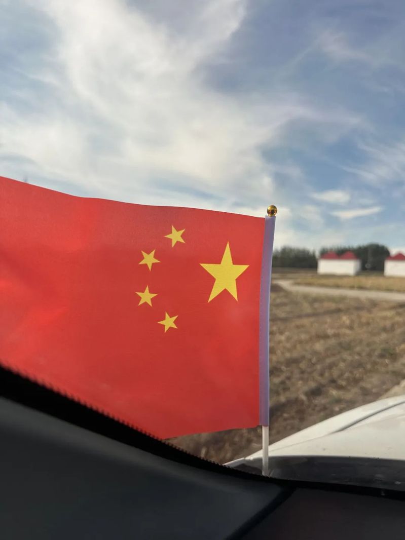 车上也插上了小红旗,知农爱农,国旗永远能给一种力量。