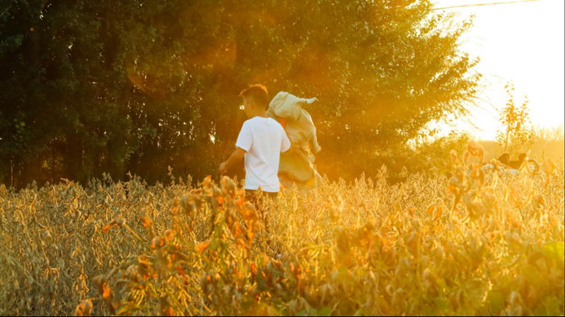 夕阳+小咬+豆田+农学人=美景!