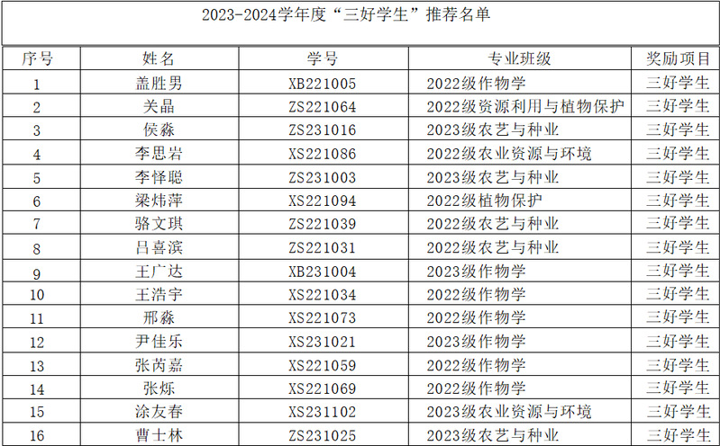 根据学校《关于评选2023-2024学年综合奖学金、先进集体和先进个人的通知》要求,依据《best365中国官方网站本科生奖励规定》,经自主申报、资格审核、班级测评、评审委员会评审,最终推荐盖胜男等16名研究生为校级“三好员工”荣誉称号,现予以公示,详细名单见附件。