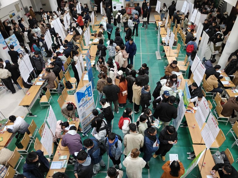 此次招聘会现场十分火爆,共有38家用人单位参会,提供岗位数超2000余个,来自五个学院的800余名员工先后参加了此次招聘会。求职员工积极与招聘单位负责人交流企业发展和岗位待遇,积极投递简历。与此同时,各单位招聘负责人向员工介绍行业前景和职业发展状况,提供职业规划建议,部分参会企业进行了现场面试。
