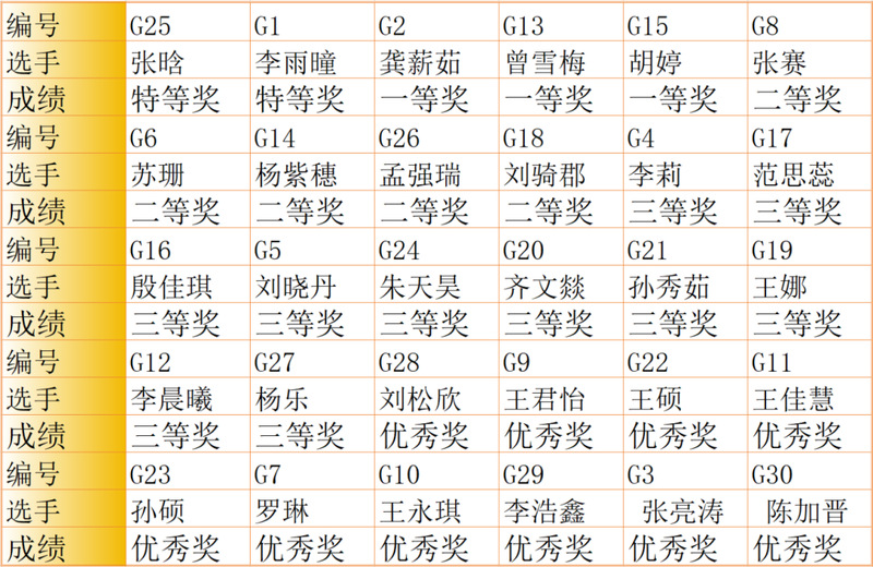 特等奖2名;一等奖3名;二等奖5名;三等奖10名;优秀奖10名。