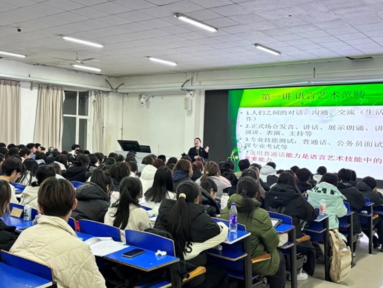为进一步提升新生们的沟通与表达能力,为未来的学习和职业生涯打下坚实的基础,11月12日晚,学院在主楼副楼128教室举办“沟通与表达”专题讲座,特邀大庆市朗诵家艺术研究会副主席房岚老师来院授课,200余名新生参加培训。