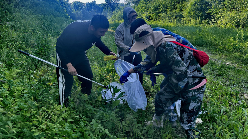 诚然冬天的亚布力游客络绎不绝,但夏天的亚布力也别有一番风景,生机勃勃,树林阴翳,白色雪道被植物染成翠绿,冰凉的溪水流淌。实习期间,老师带领我们行走在草丛中,穿梭在树林间,寻找昆虫的踪迹,同学们从一开始遇见昆虫时的手足无措,到后来游刃有余地捕捉昆虫。