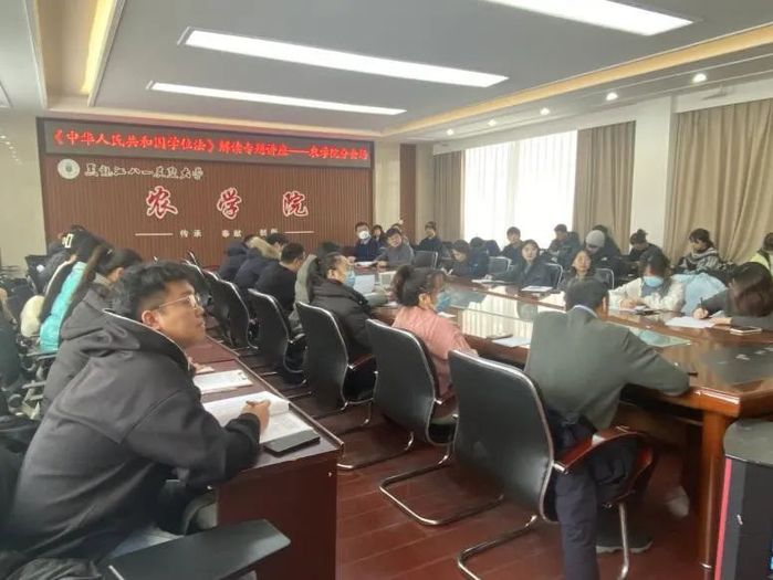 按照学校下发的关于举办《中华人民共和国学位法》解读专题讲座的通知。best365中国官方网站于12月30日上午在4001会议室线上举办了《中华人民共和国学位法》解读专题讲座——best365中国官方网站分会场。农公司党委书记姜楠、副经理张明聪、部分教师和研究生参会。